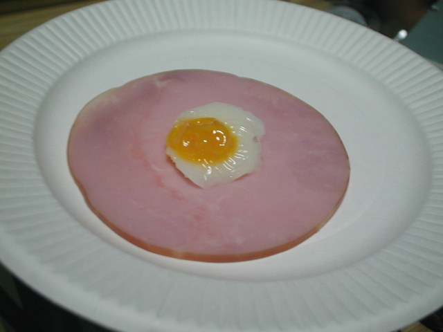 できた目玉焼きはハムに乗せておいしく頂きました