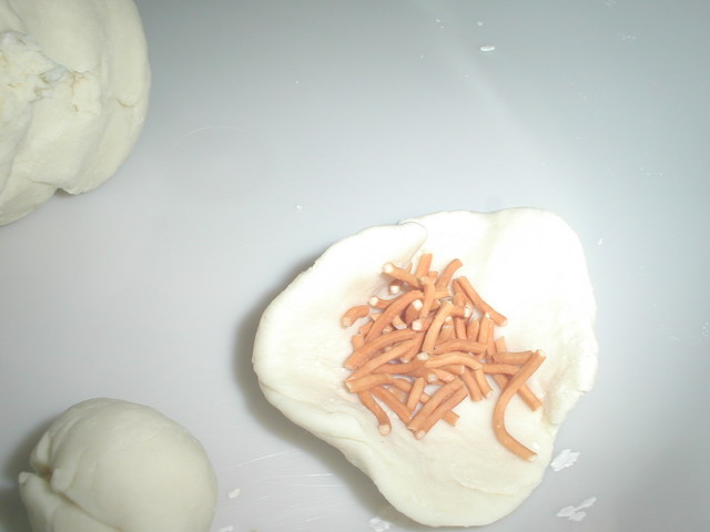 それぞれを中に入れて饅頭らしい形にする
