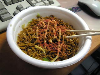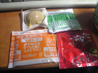 麺が出来あがり、いざ液体ソースと粉末を入れたところ