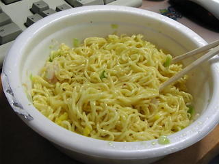 シーフードヌードルの残り汁をUFO麺と混ぜた物と言えば