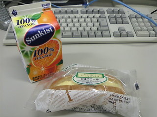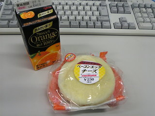 オレンジジュースとベーコンエッグチーズ