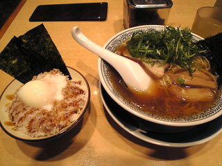 醤油ラーメンと温玉ごはんを注文